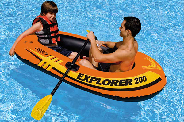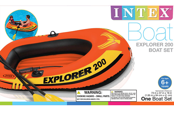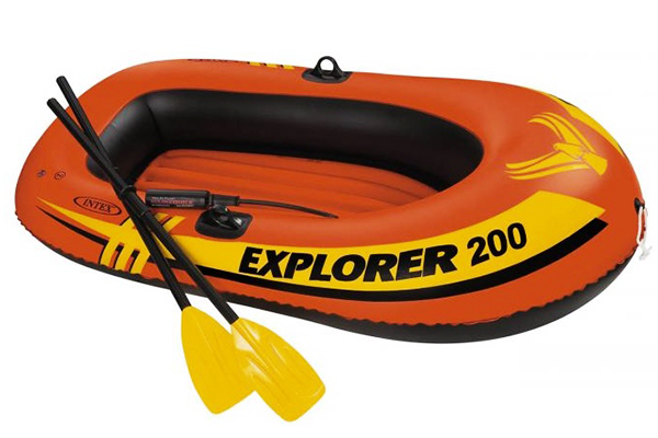 Thuyền bơm hơi trẻ em Explorer 200 Intex 58331 có thân được sản xuất từ nhựa Vinyl Super-Touch, một loại nhựa PVC có cấu trúc phân tử đặc biệt không bị ảnh hưởng dưới tác động của khí đốt, xăng dầu và nước muối đồng thời có khả năng chống chịu tốt dưới ảnh hưởng của sự cọ xát, va đập và ánh mặt trời. Chất liệu này cũng cho phép thuyền nhận áp lực khí lớn hơn thông thường để đảm bảo sự cứng chắc cần thiết.